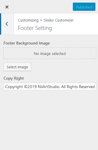 There’re footer copyright text , social link, footer on/off , footer logo will be configure. All of them can be