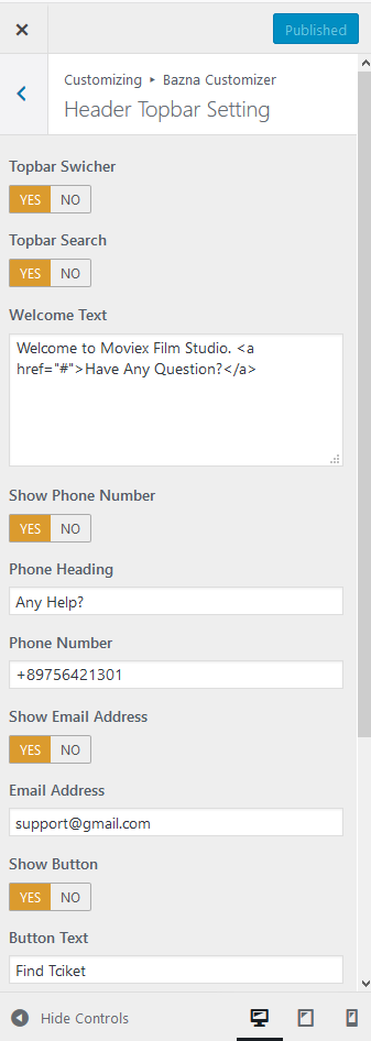 There’re Topbar Switter on/off avalible. All of them can be configured in