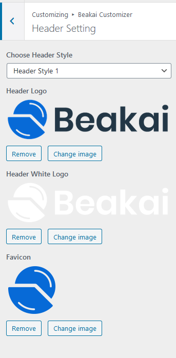 Customise → Beakai Customizer → Header Settings