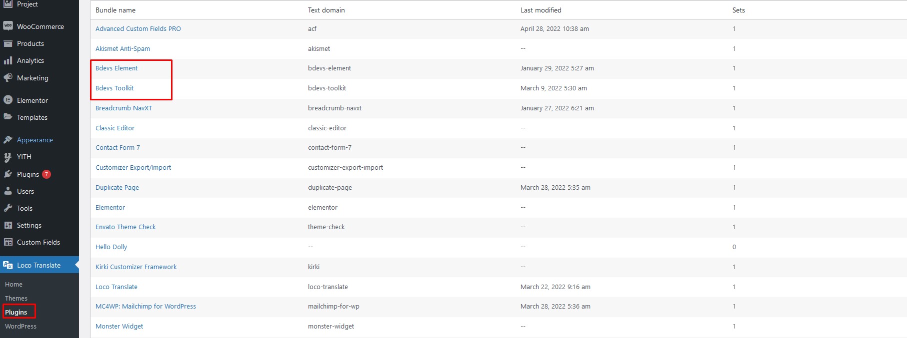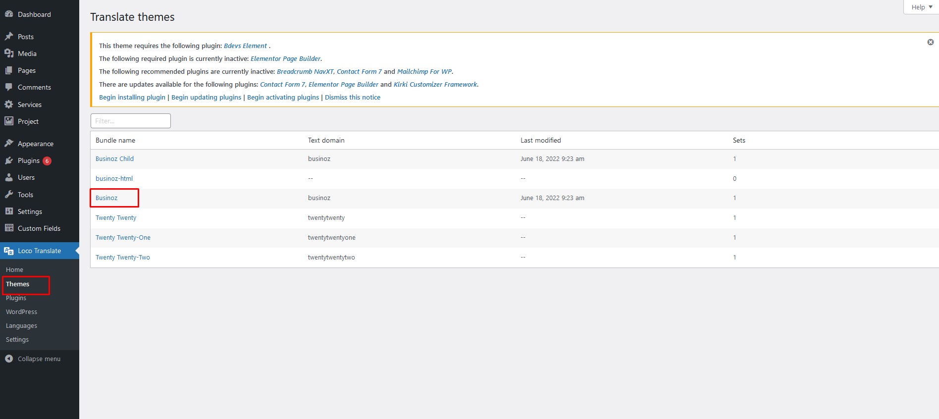 Step 2: Select the Theme or Plugin you want to translate from "Loco Translate" menu.