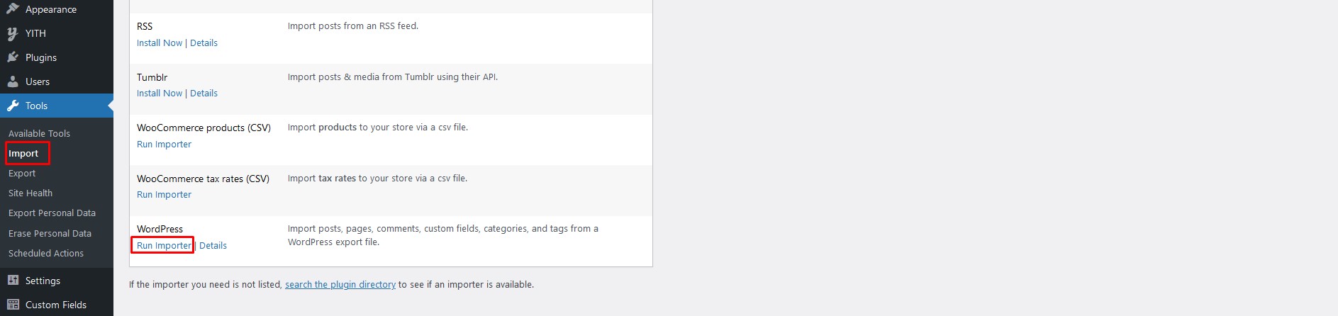 - Importing Widgets: You can import widgets using plugin Widget Importer & Exporter. After installing this plugin, navigate to Tools->Widget Importer & Exporter. In the next step when file uploading option appears, select the "widgets.wie" file from sample-data and start importing.
