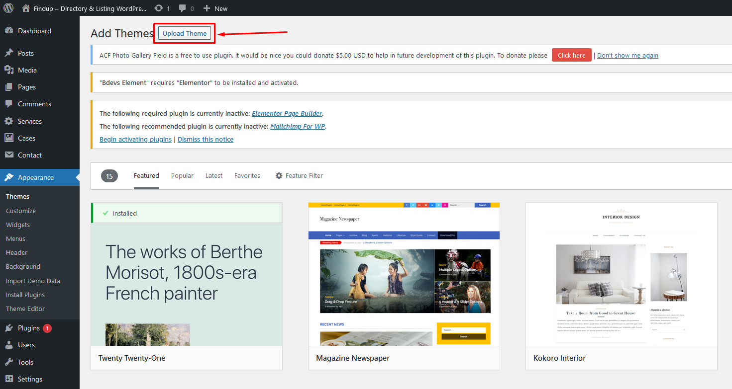 Note: When uploading your theme with the installer, please ensure you are uploading the theme .zip file, not the entire package you downloaded. In this case, you will be uploading Findup.zip.