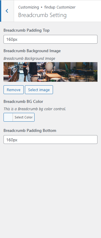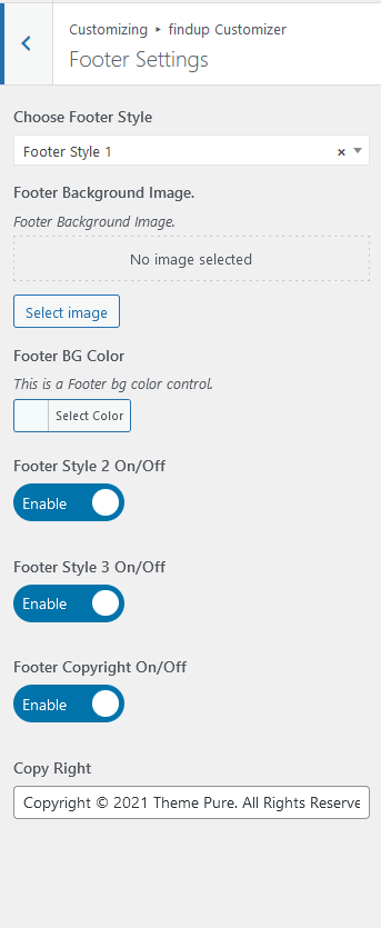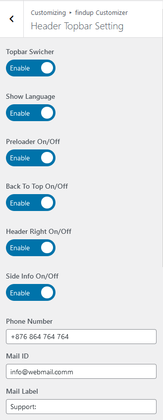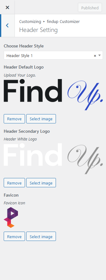 Customise → FindupCustomizer → Header