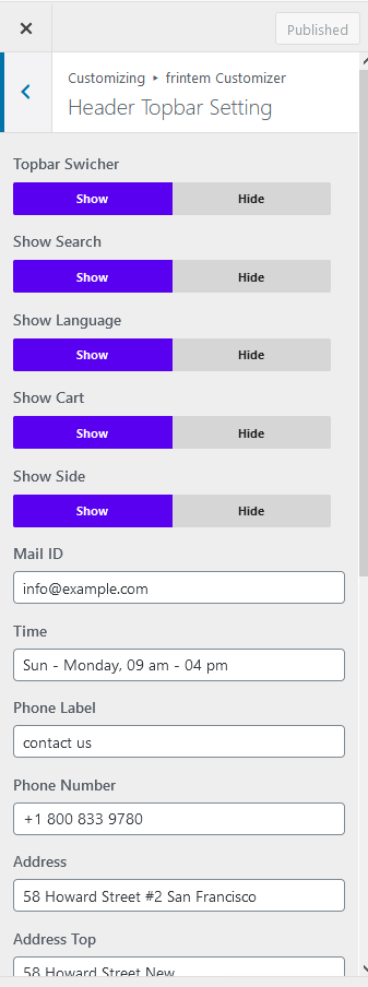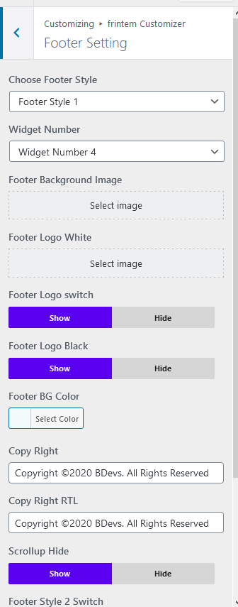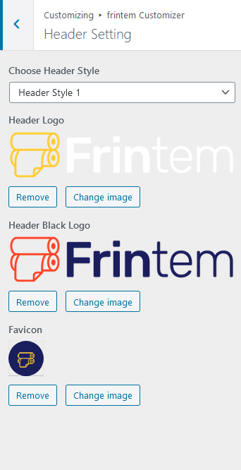 Here includes various options to control the header style , footer style and Logo Setting on each page.