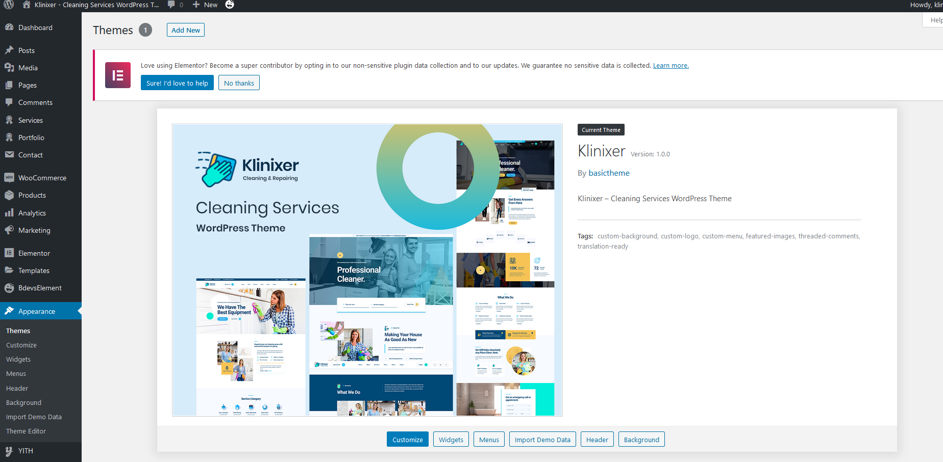 Once uploaded, activate the theme by heading to the “Themes” menu in the WordPress Dashboard. Locate the Klinixer theme and hit “Activate”.