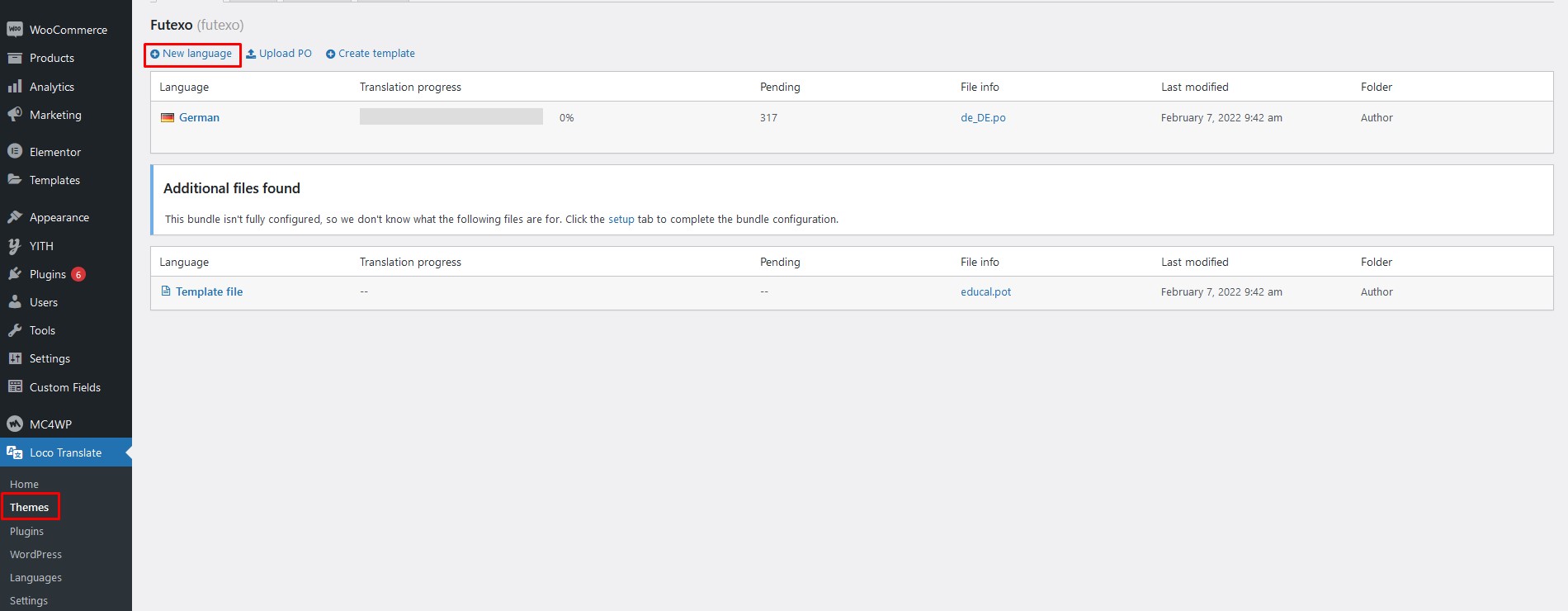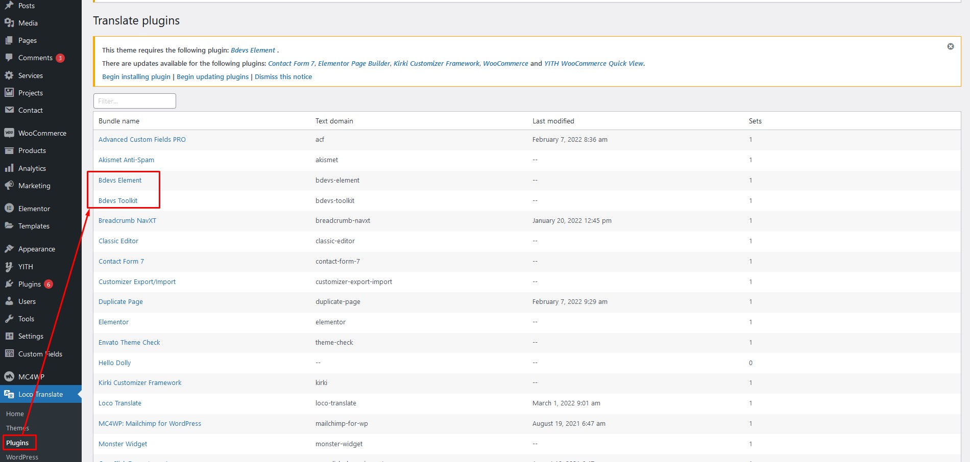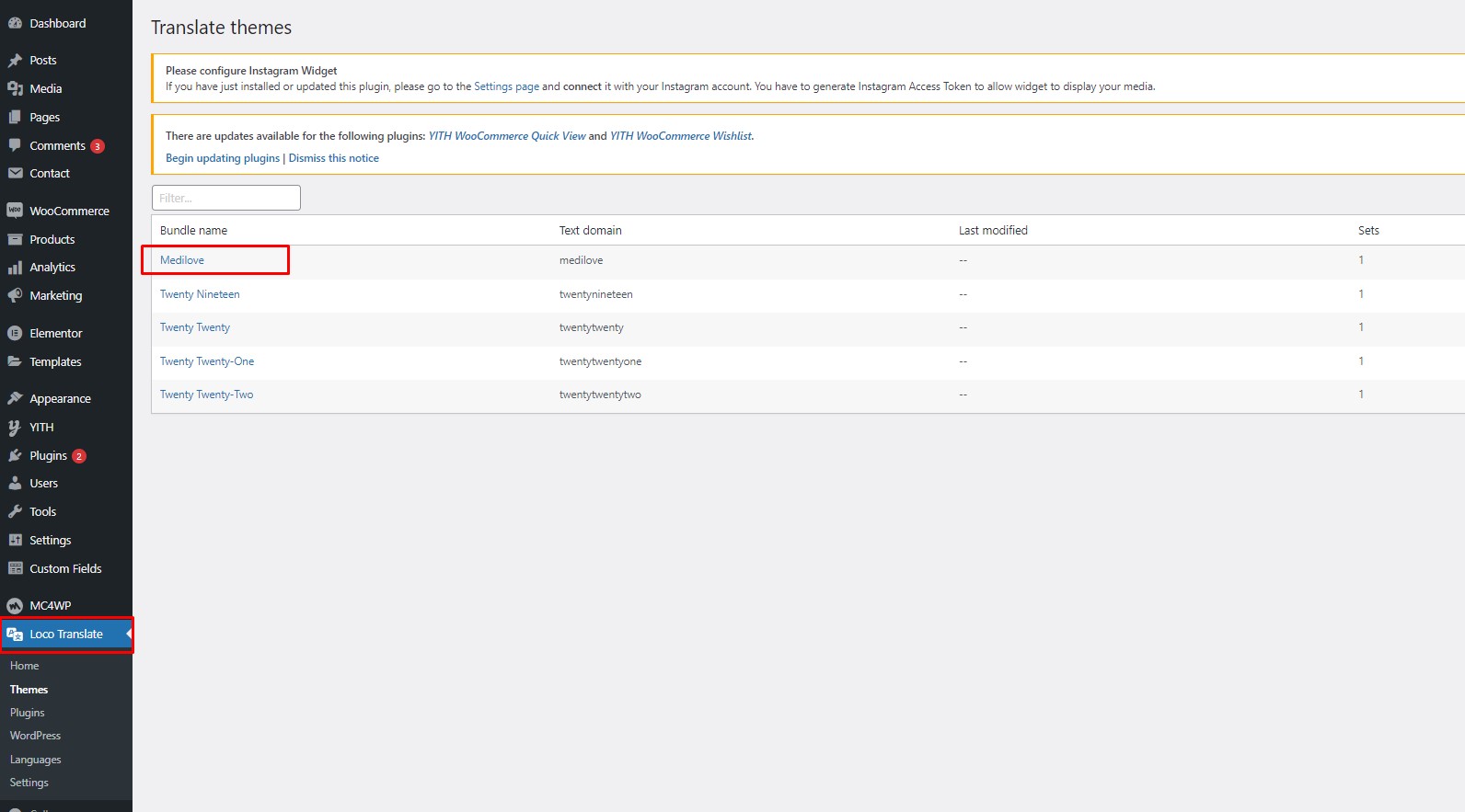 Step 2: Select the Theme or Plugin you want to translate from "Loco Translate" menu.