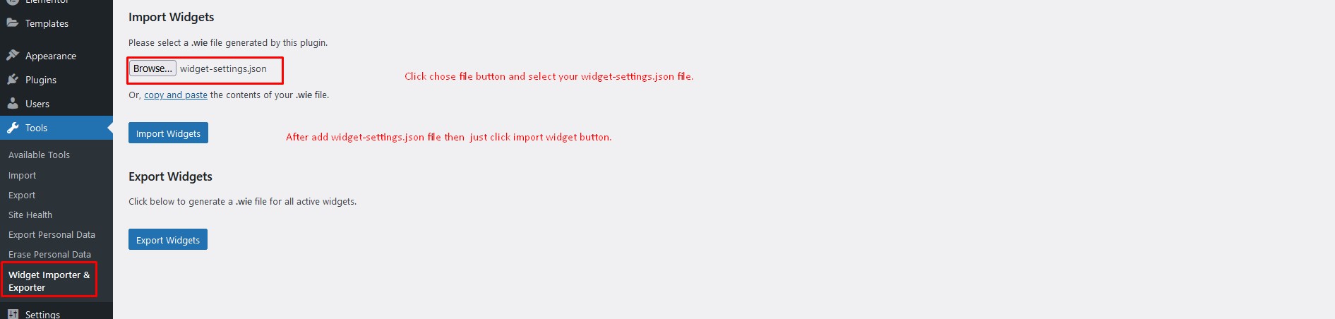- Importing Widgets: You can import widgets using plugin Widget Importer