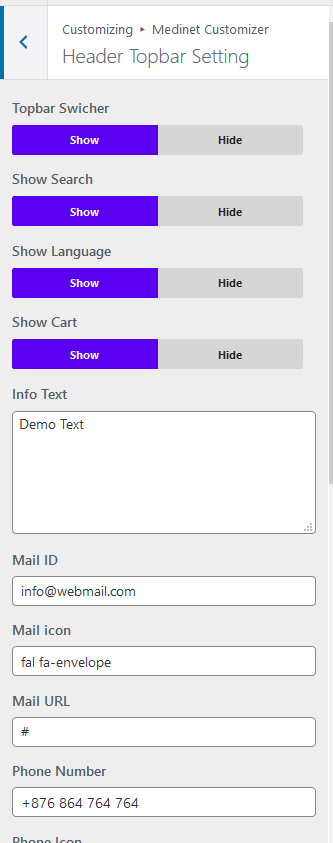 There’re Topbar Switter on/off avalible. All of them can be configured in