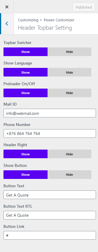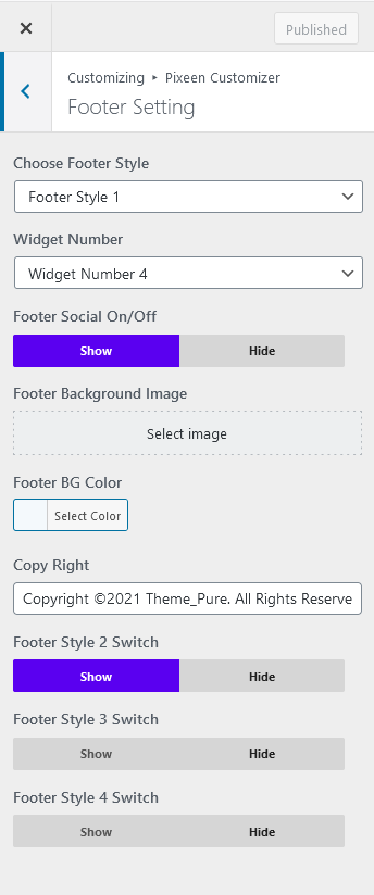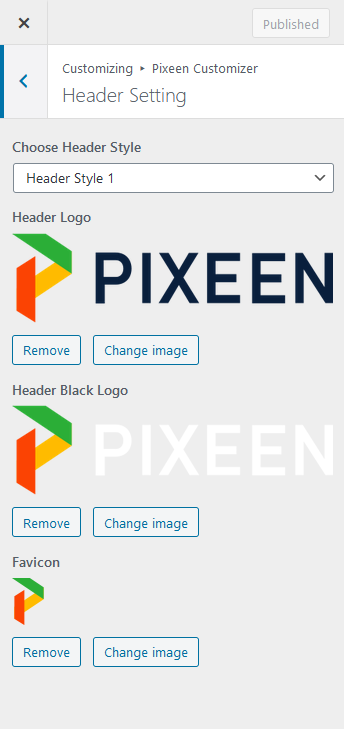 Here includes various options to control the header style , footer style and Logo Setting on each page.
